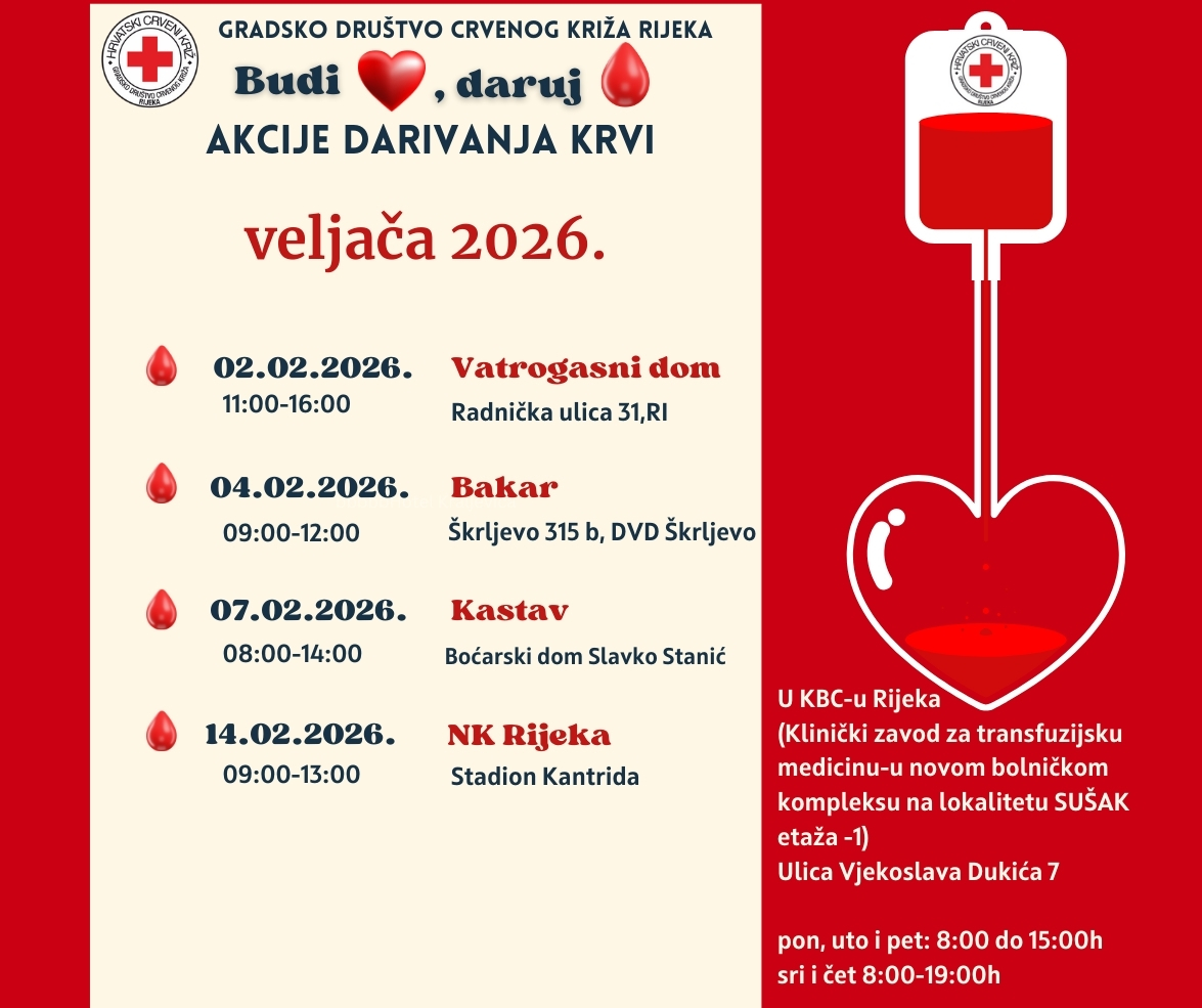 Kalendar akcija darivanja krvi veljača